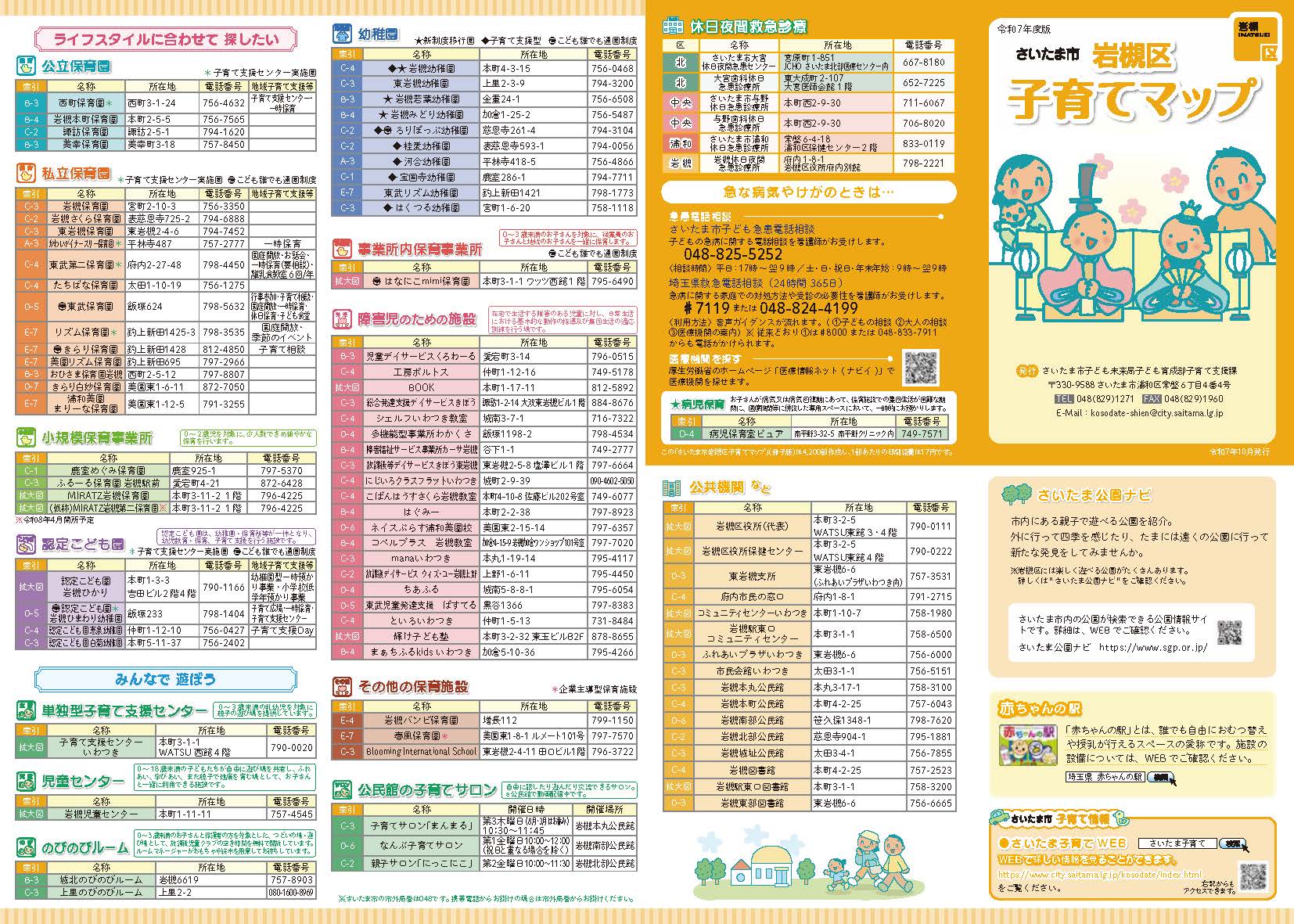 子育てマップには、休日夜間の救急診療や相談窓口も掲載されています。