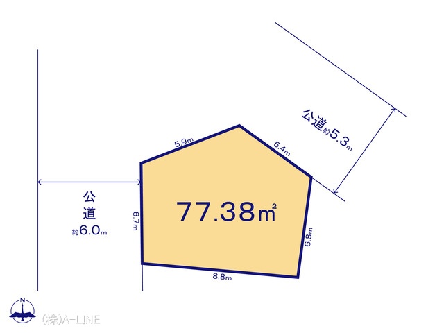 | 現況/引渡し | 上物あり/相談 | 接道状況 | 接道: 西 6m 公道 接道: 北東 5.3m 公道 |