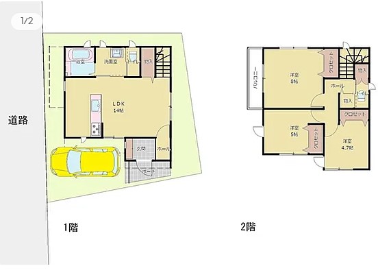 ◆主寝室8帖&全居室収納付き!物件価格を抑えた駐車スペース付3LDKの2階建て