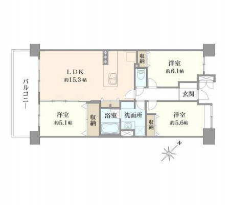 | 間取り | 3DK (DK8.1/洋室4.8/洋室6/洋室5.1) | ||||