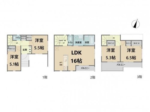 | 採光面 | - | 構造/階数 | 木造/地上3階建 |