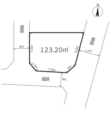 | 現況/引渡し | 古屋あり 更地渡し/即時 | 接道状況 | 接道: 南 4m 公道 道路幅: 7.9m 接道: 東 5.5m 公道 道路幅: 9m 接道: 西 4m 公道 道路幅: 7.6m |