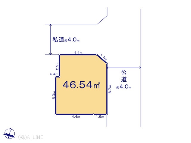 | 現況/引渡し | 更地/相談 | 接道状況 | 接道: 北東 4m 公道 接道: 北西 4m 私道 |