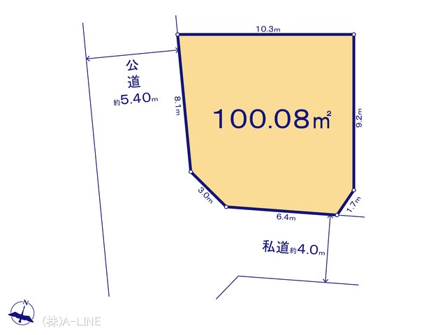 | 現況/引渡し | 更地/相談 | 接道状況 | 接道: 西 5.4m 公道 接道: 南 4m 私道 |