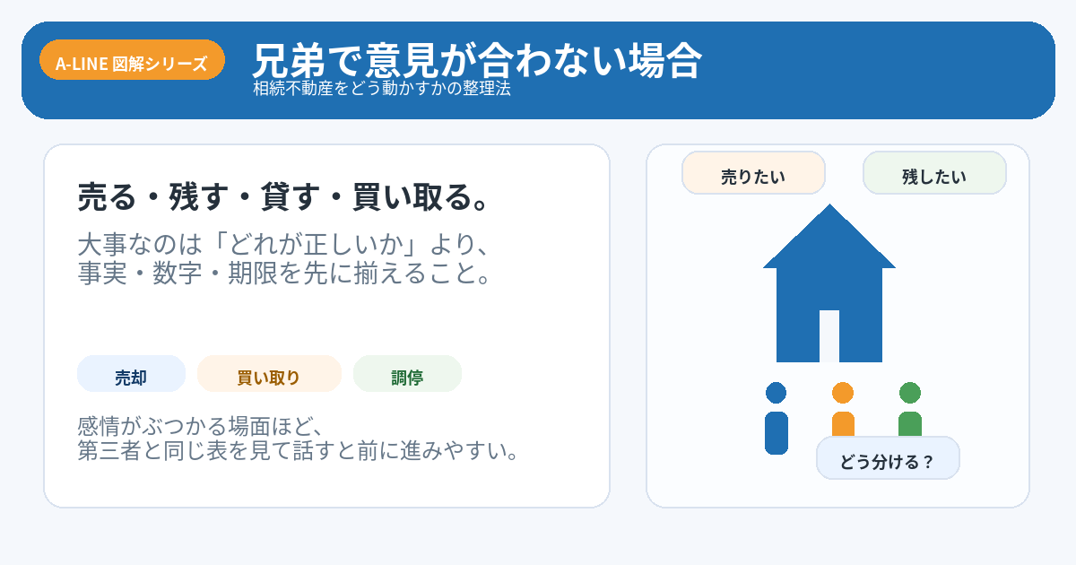 【図解】兄弟で意見が合わない場合どうするか|相続不動産を売却につなげる進め方