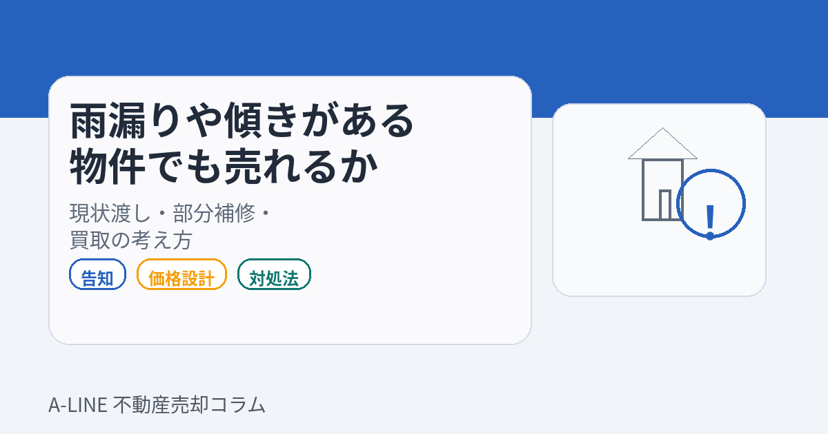 【図解】雨漏りや傾きがある物件でも売れるか|現状渡し・補修・買取の考え方