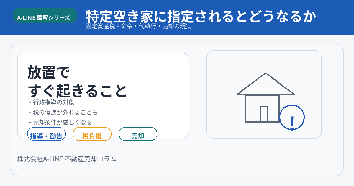 【図解】特定空き家に指定されるとどうなるか|固定資産税・命令・代執行・売却の現実