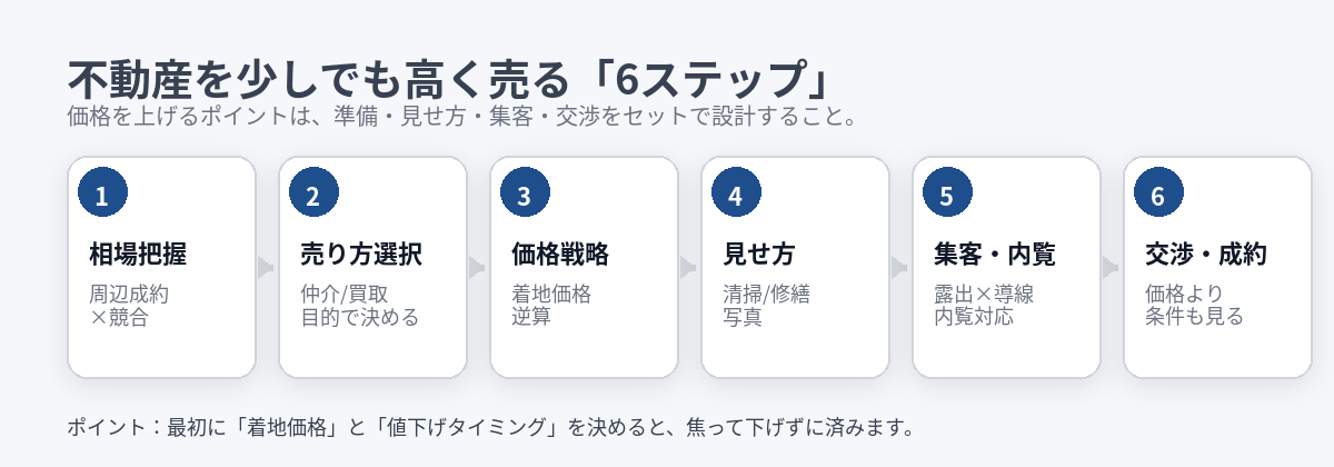 〖図解〗不動産を少しでも高く売る方法|価格設定・内覧・広告・交渉まで「値下げしない」売却戦略