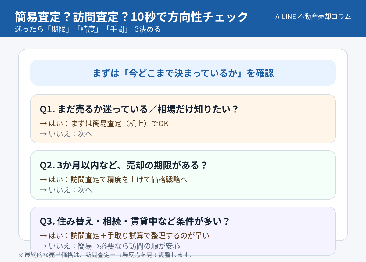 〖図解〗簡易査定・訪問査定の違い|無料査定を“失敗しない順番”で使い分ける方法(A‑LINE)