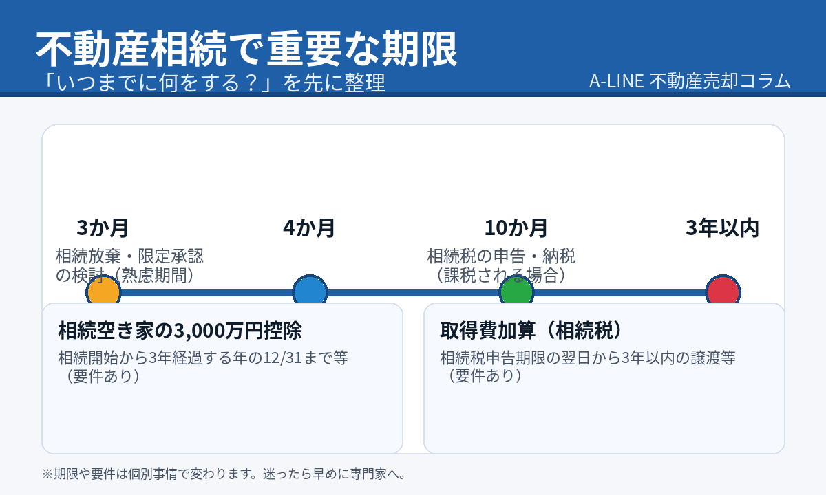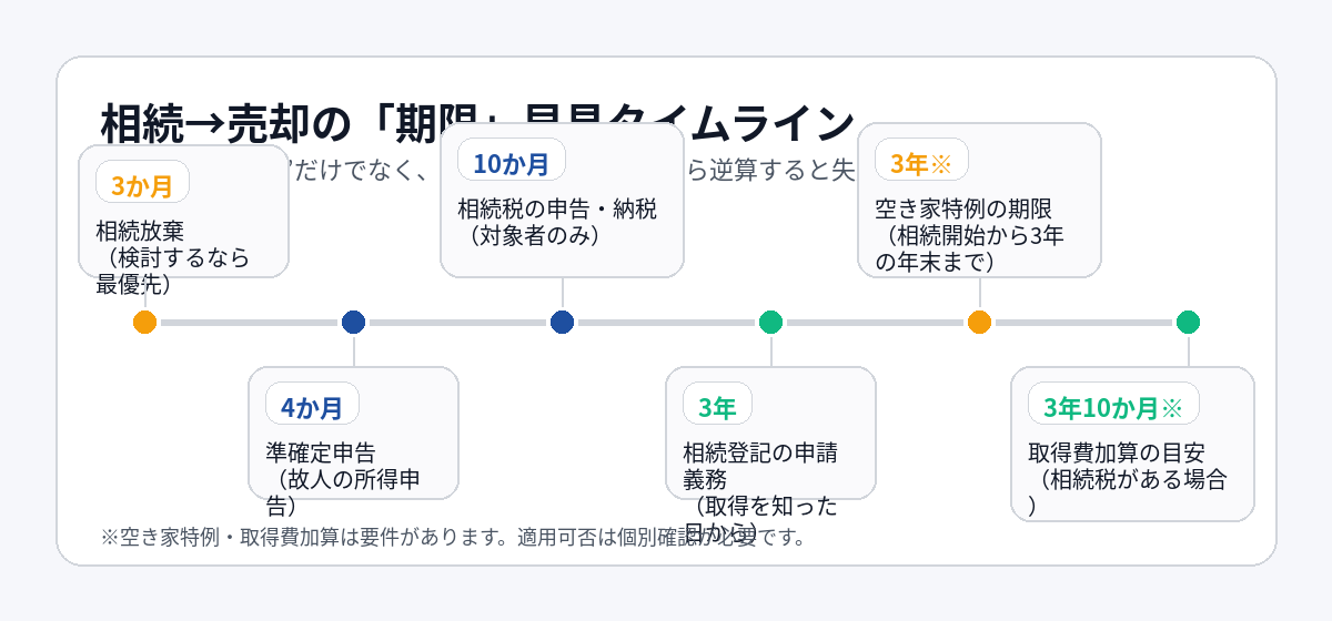 〖図解〗相続した不動産の売却タイミング|「いつ売る?」は期限と手残りで決まる