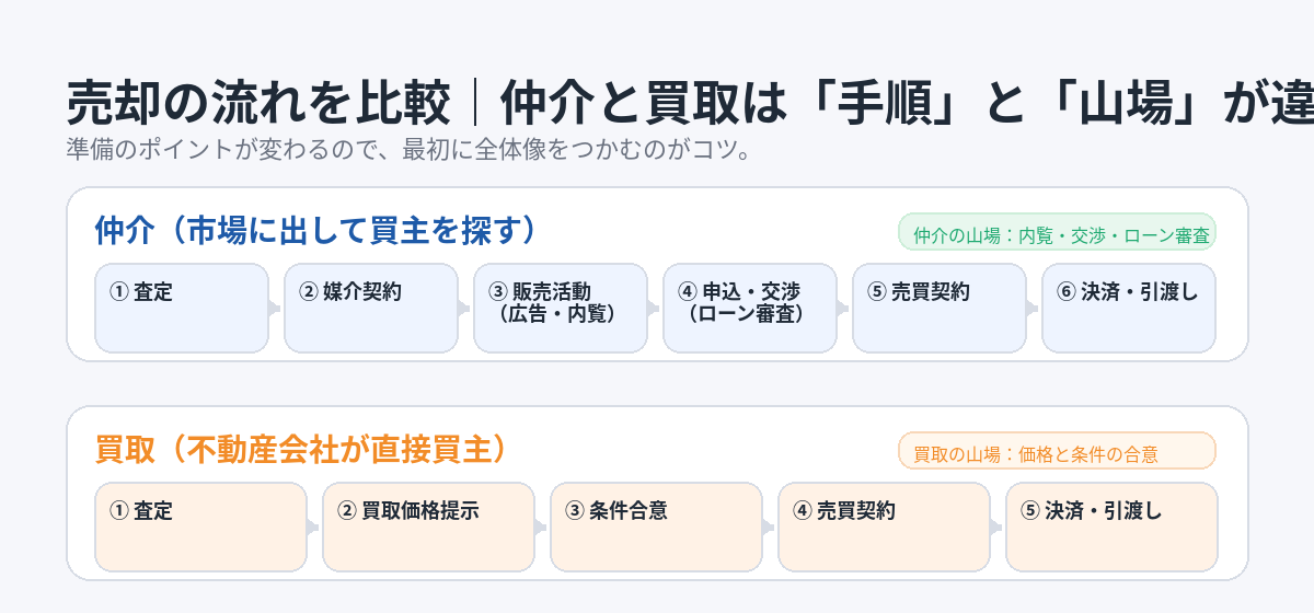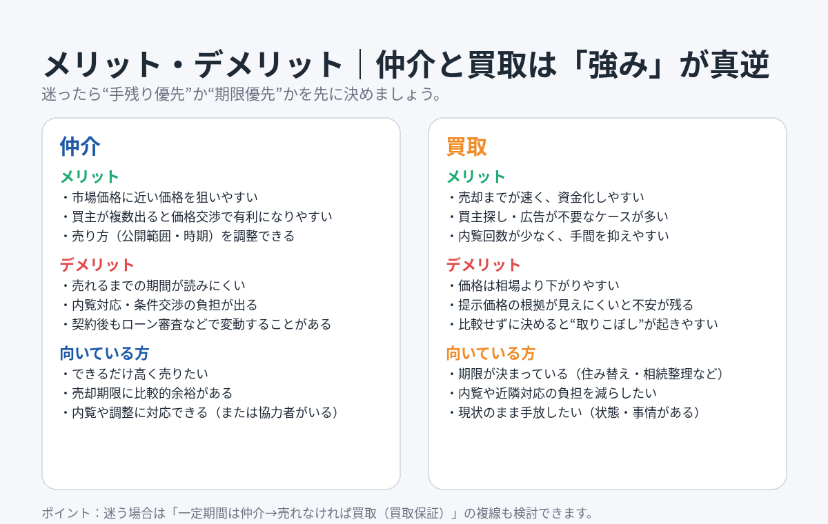 〖図解〗不動産売却「仲介」と「買取」の違い|メリット・デメリットと“後悔しない選び方”を整理