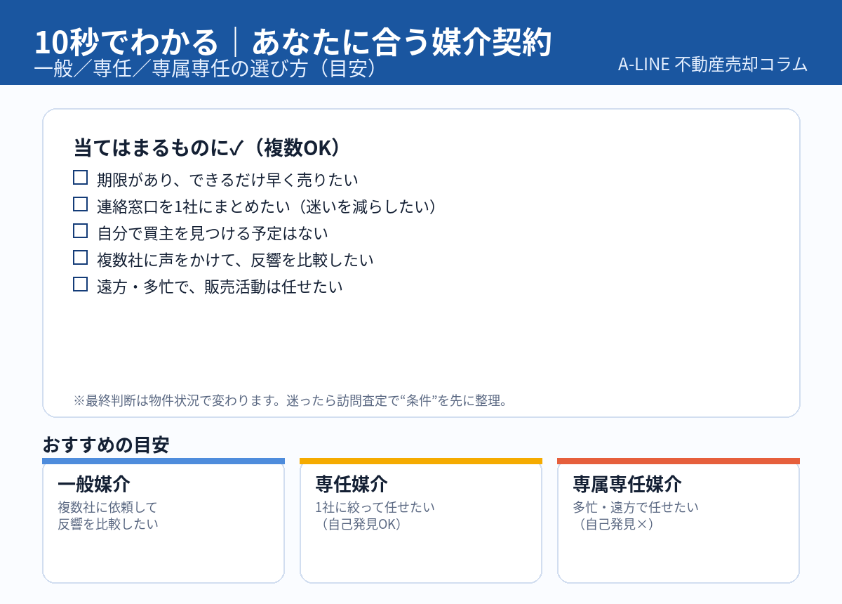 4. 10秒で選ぶ|あなたに合う媒介契約(図解)