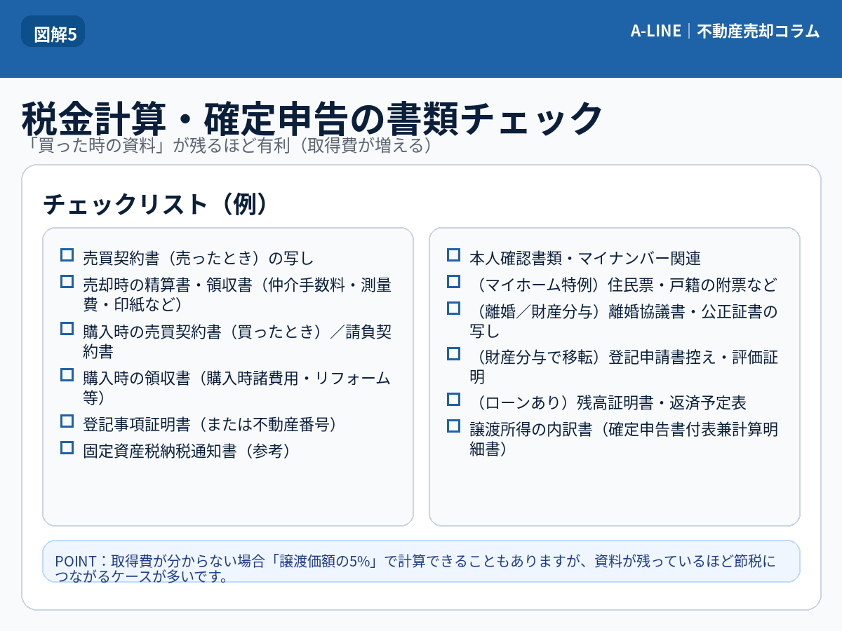 買った時の資料がない(取得費が増やせず税負担が増えることがある)