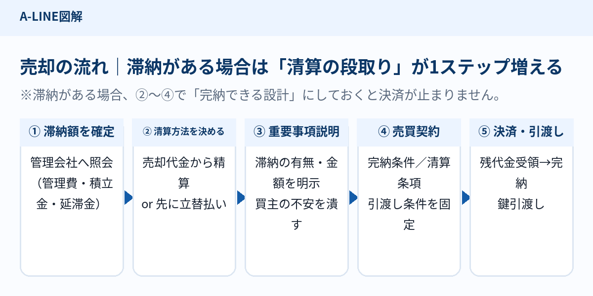 4. 売却の流れ|滞納がある場合は「清算の段取り」が1ステップ増える
