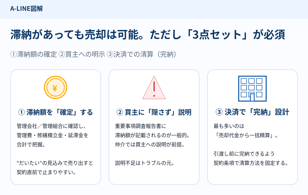 1. まず結論|滞納があっても売却はできる。ただし「3点セット」が必要