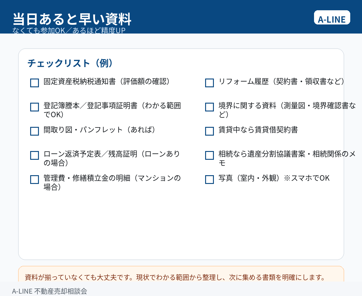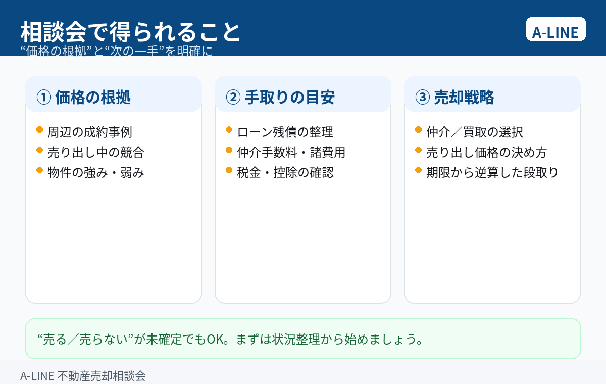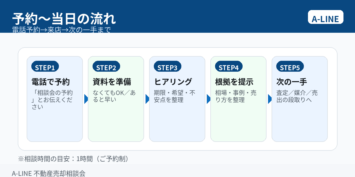【図解】不動産売却相談会とは?相談前に整理すること・当日の流れ・予約方法(A-LINE)