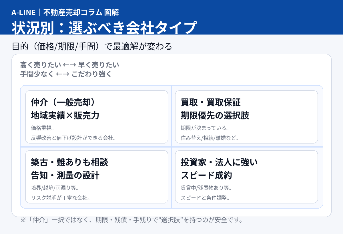 状況別:選ぶべき会社タイプ(仲介だけが正解ではない)