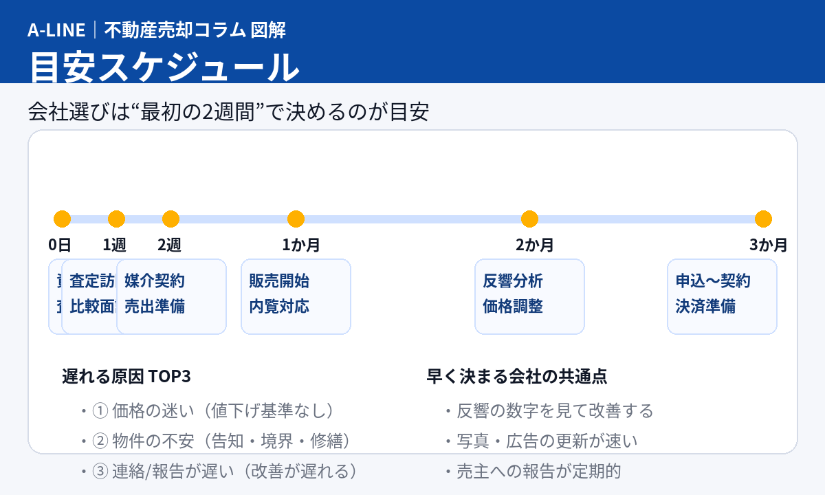 売却が長引く原因の多くは「会社選び」ではなく、選んだ後の運用(報告・改善)が回らないことです。