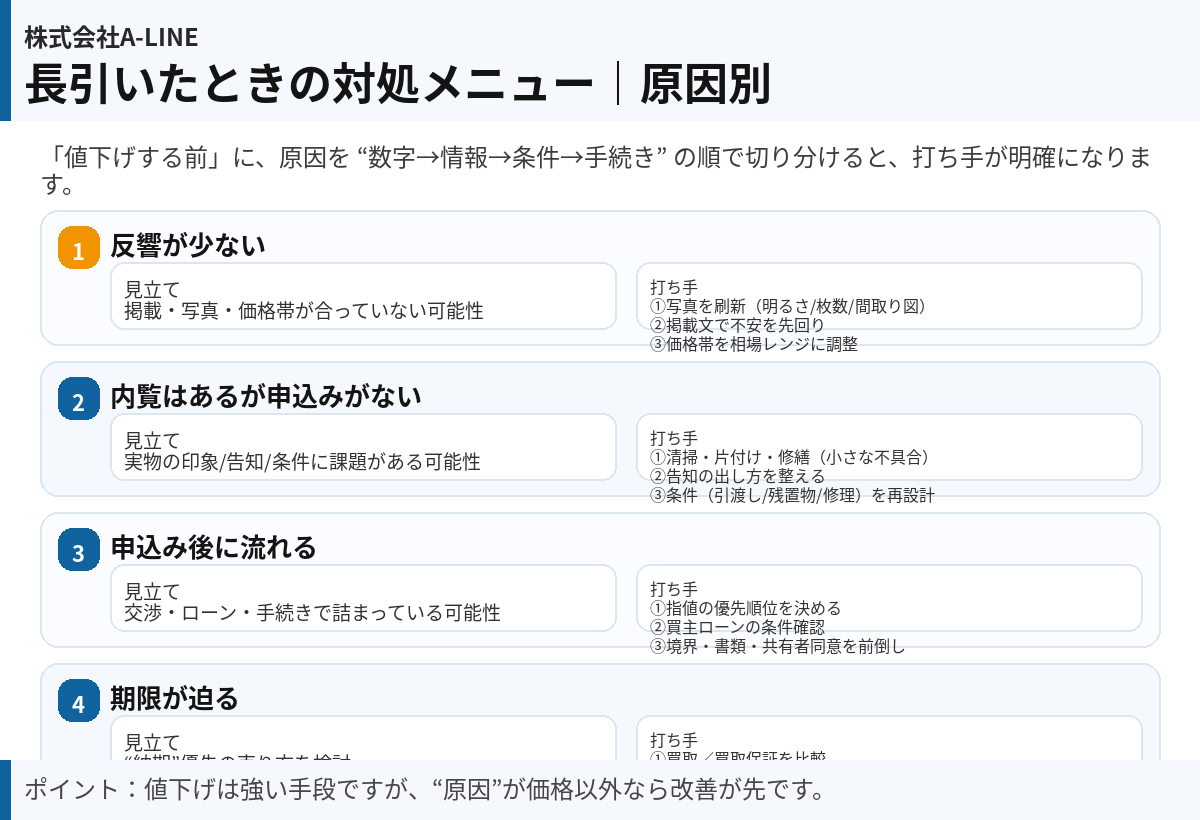 ここを切り分けると「値下げすべきか/広告改善が先か/書類・交渉が先か」が一気に整理できます。