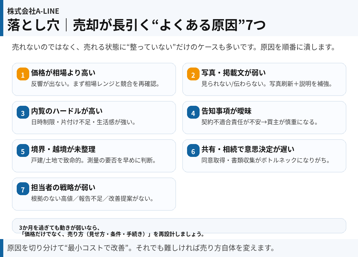 落とし穴7つ|売却が長引く“よくある原因”