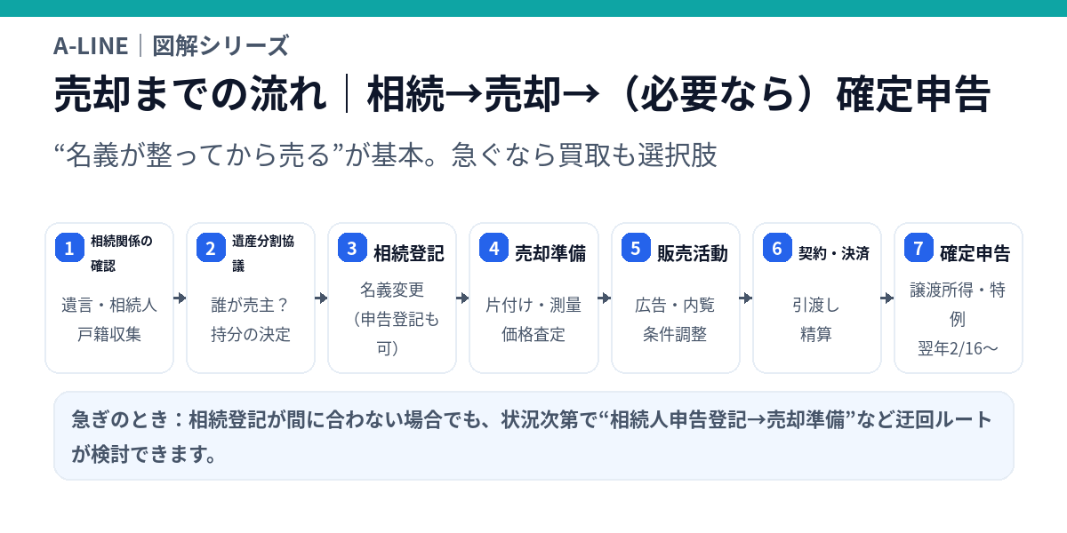 【図解】相続した実家の売却方法|名義・共有・片付け・税金まで“やること順”で解説|不動産売却コラム | 【仲介手数料無料】さいたま市緑区・東浦和の不動産情報ならA-LINE(エーライン)