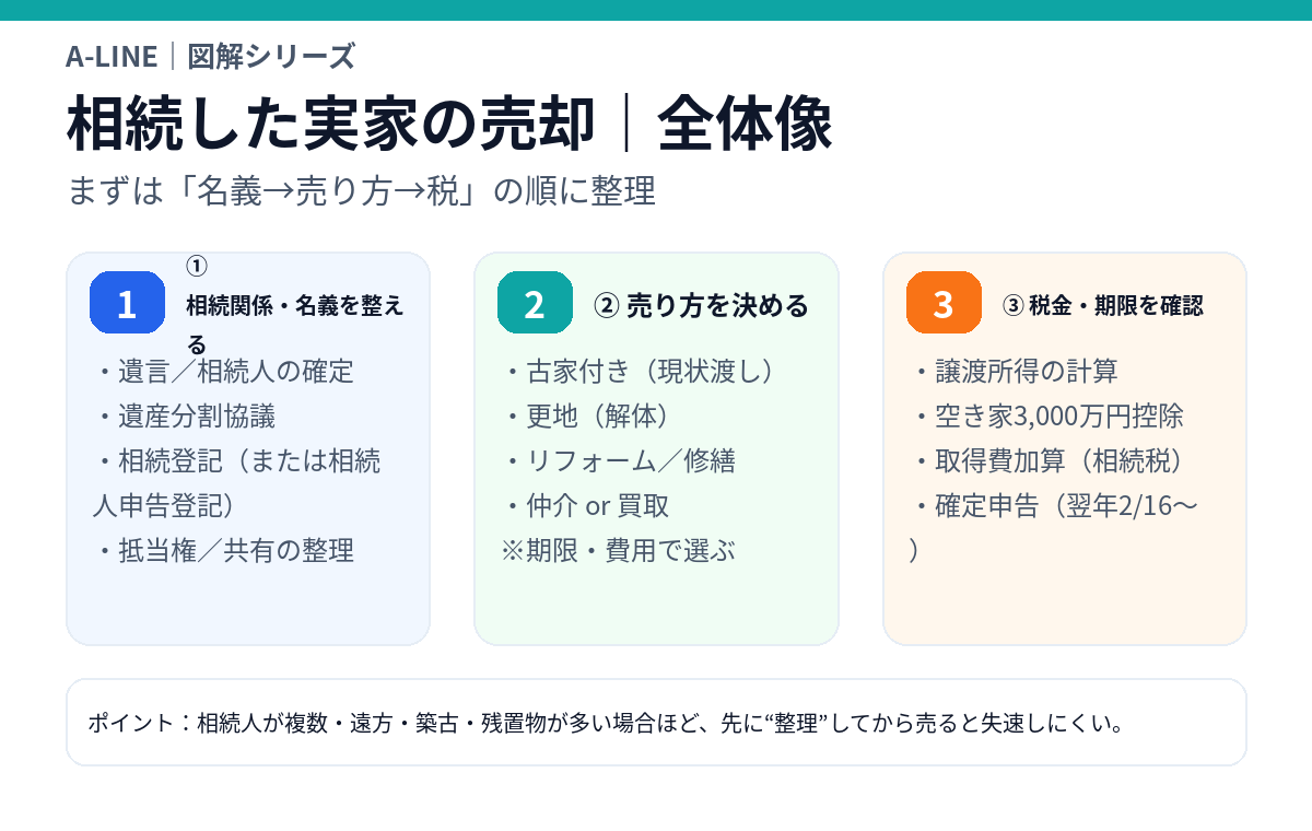 1. 結論:実家売却は「名義→売り方→税」の順に整理