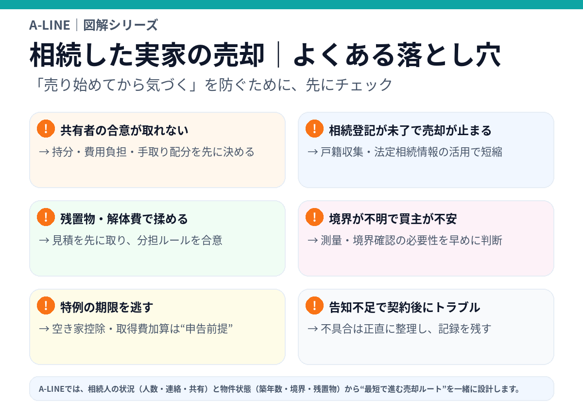 「売り始めてから」では遅い論点を先に潰しておくと、売却がスムーズです。