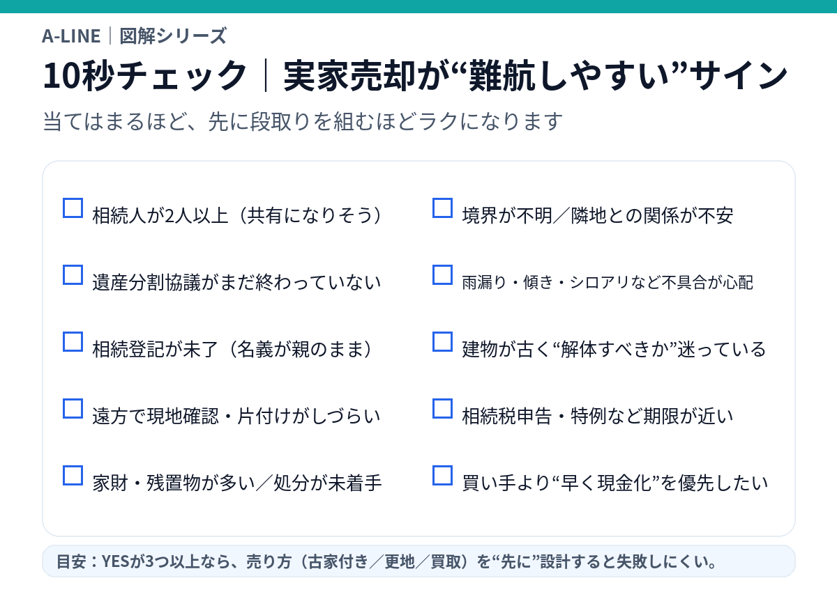 相続した実家の売却は、不動産の話だけでなく“段取り設計”が勝負です。