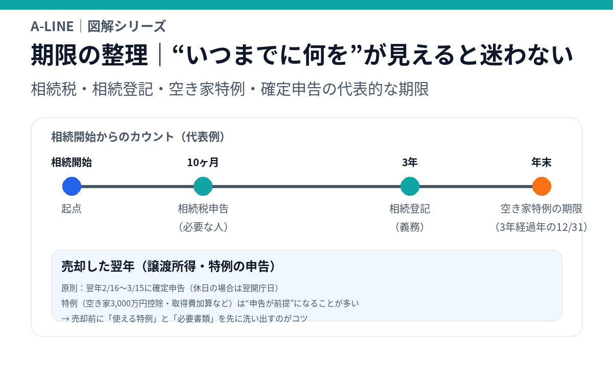 実家売却では、次の期限が絡みやすいです。
